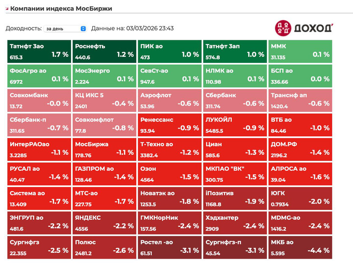 Оптимизм оказался недолгим: российский рынок развернулся вниз. Индекс МосБиржи не удержался на достигнутых уровнях и просел до 2825 пунктов (-0,37%). РТС чувствует себя хуже (-0,93%), а к вечеру картина стала совсем мрачной — индекс МосБиржи на вечерней сессии провалился более чем на процент.
