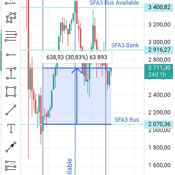 Цена рублебочки пробила 3500 рублей вниз - это падение стоимости нефти на 40% г/г и это тоже минимум с начала 2023 года.